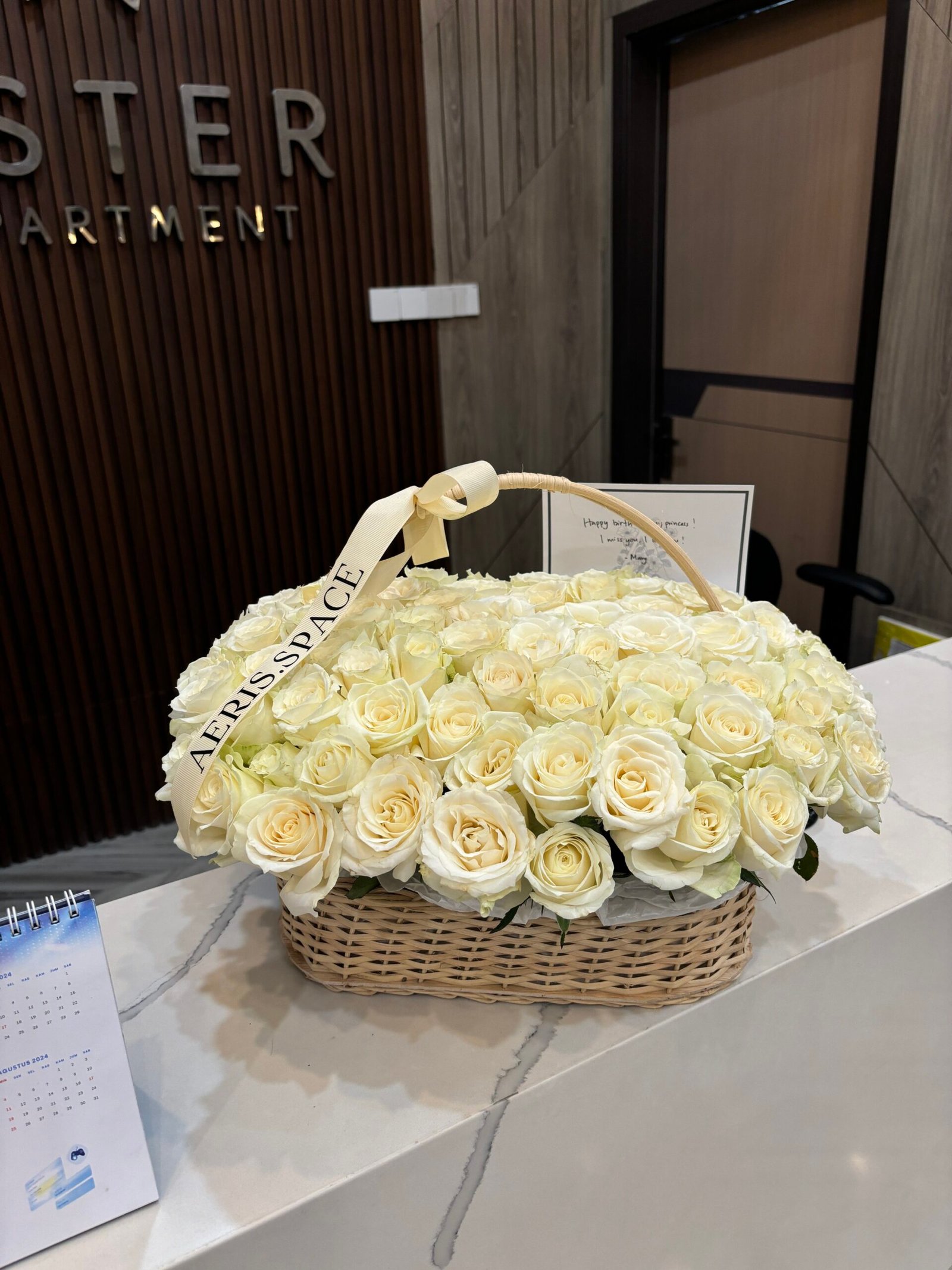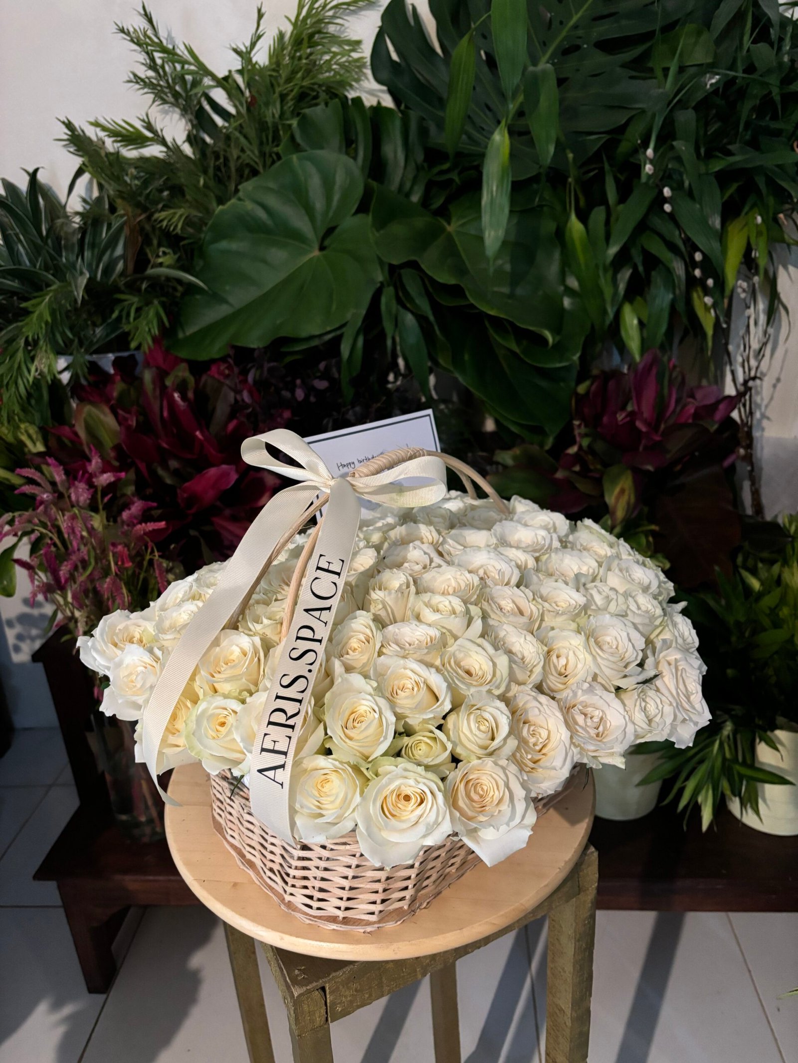 101 White Roses in a Basket